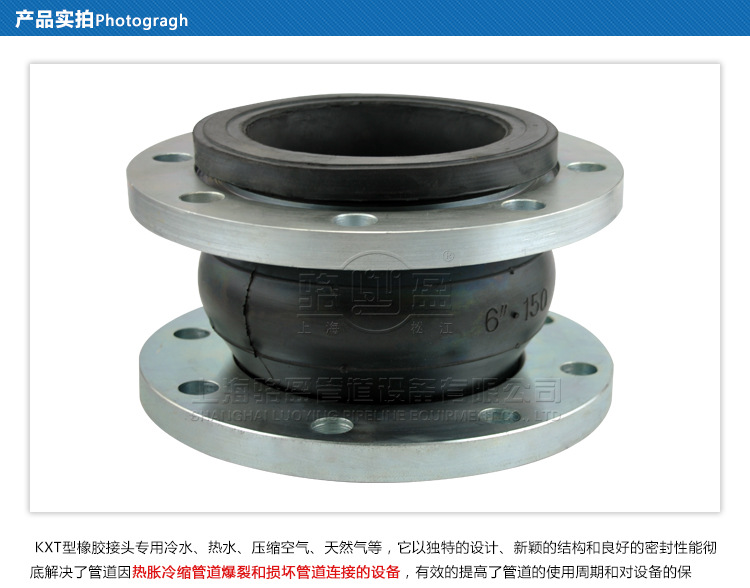 單球體防拉脫橡膠接頭用以金屬材料管路中間起柔性連接功效的空心橡塑制品,由內(nèi)外層膠、布簾層和鋼絲圈構(gòu)成管形橡膠產(chǎn)品,經(jīng)硫化橡膠成形后再與金屬材料法蘭盤或平行面連接頭活套法蘭組成。此商品能夠 和閥門連接,關(guān)鍵具有補(bǔ)償管路收攏,降低管路振動對別的機(jī)器設(shè)備導(dǎo)致的損害,多用以水泵房及振動強(qiáng)烈的管路上。高層住宅給排水應(yīng)用DN100之上商品,有固定不動固定支架或安裝防拉脫設(shè)備。