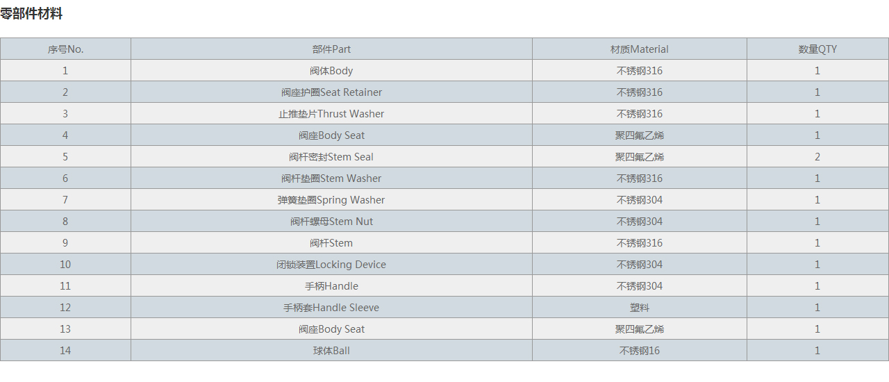 | 1 | 閥體Body | 不銹鋼316 | 1 |