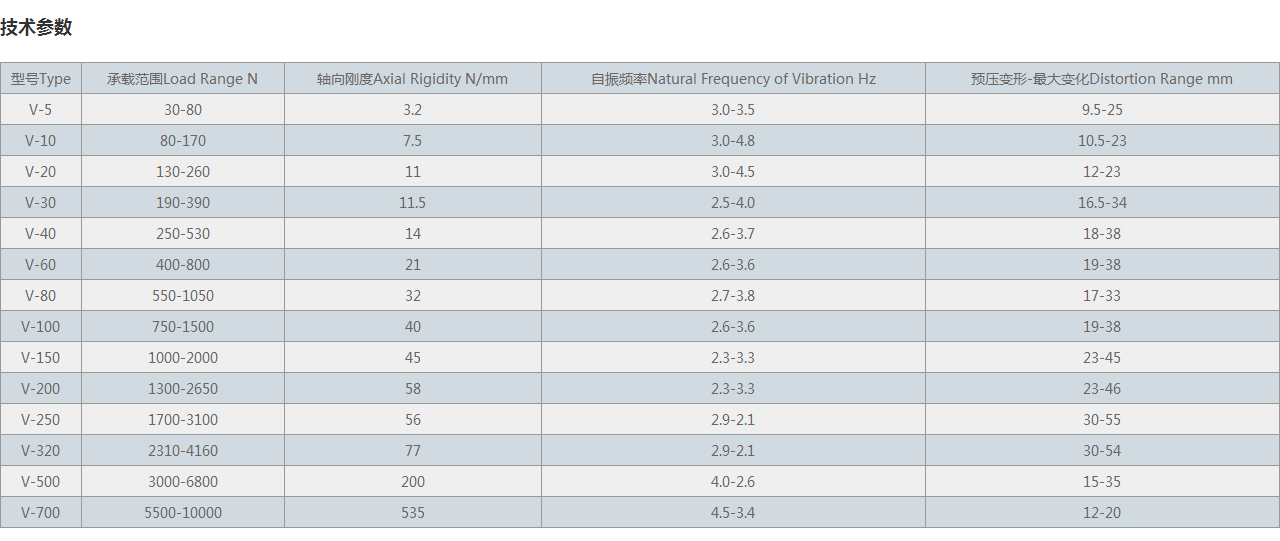 | 型號(hào) | 荷重范圍(Kg) | 彈性系數(shù)(Kg/mm) | 適用撓度(mm) |