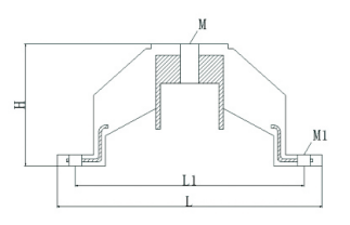JGD型橡膠剪切隔振器是由內(nèi)、外鋼套和中間的合成橡膠組成,經(jīng)硫化呈中空圓錐體,橡膠部分受剪切力。固有頻率較低;變型范圍較大;結構簡單、安裝方便??芍苯影惭b在機座下,也可用地基螺栓固定安裝,使用安全可靠;